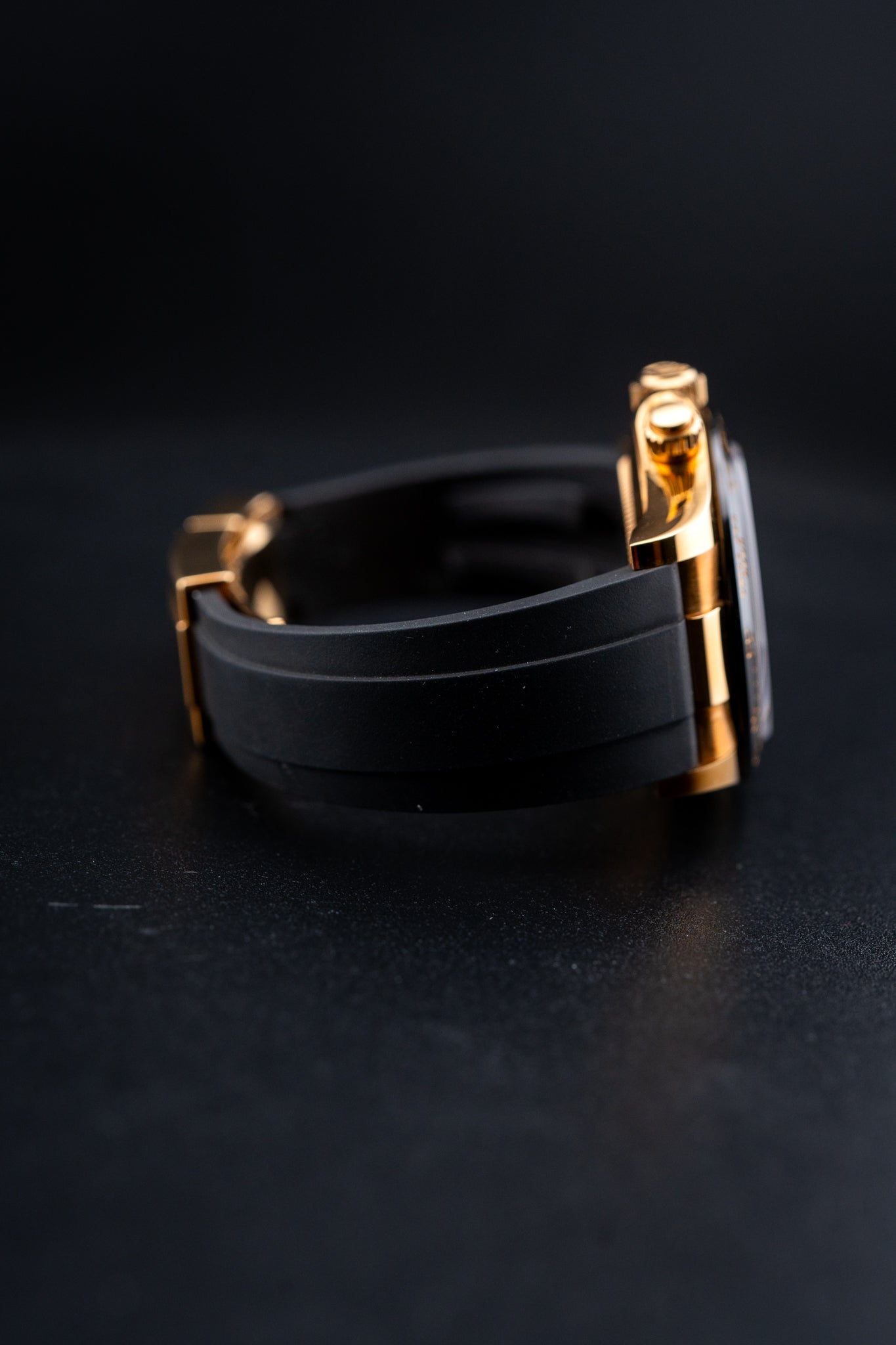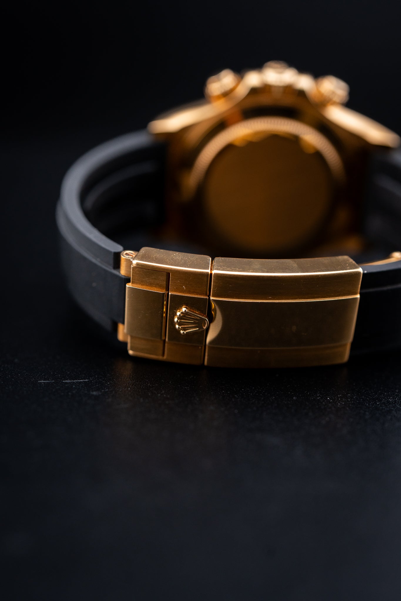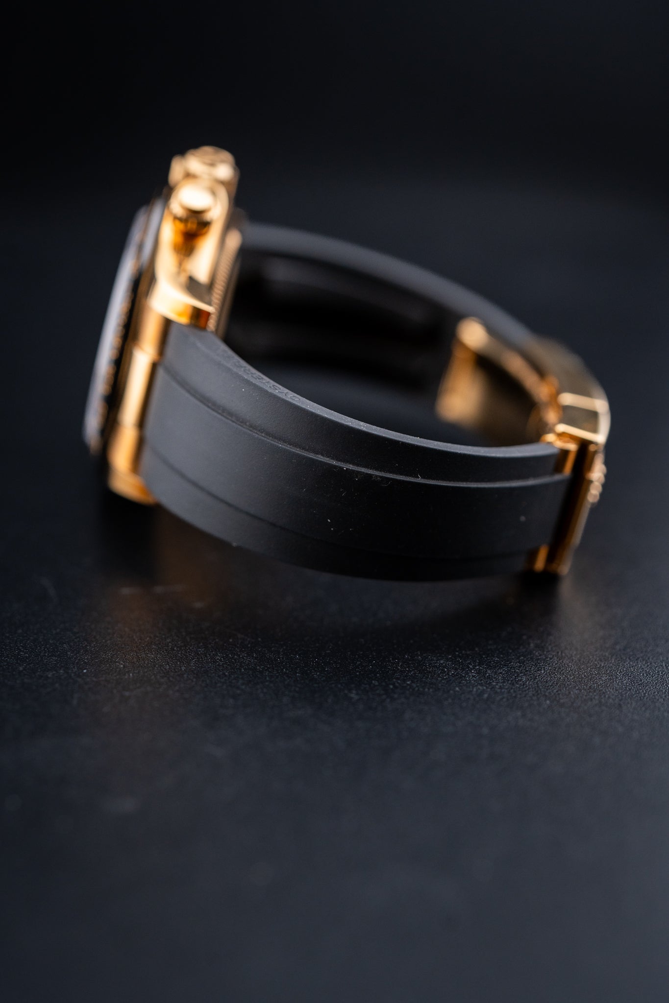 Bracelet: Black Oysterflex Rubber Strap with 18k Yellow Gold Folding Oysterlock Clasp