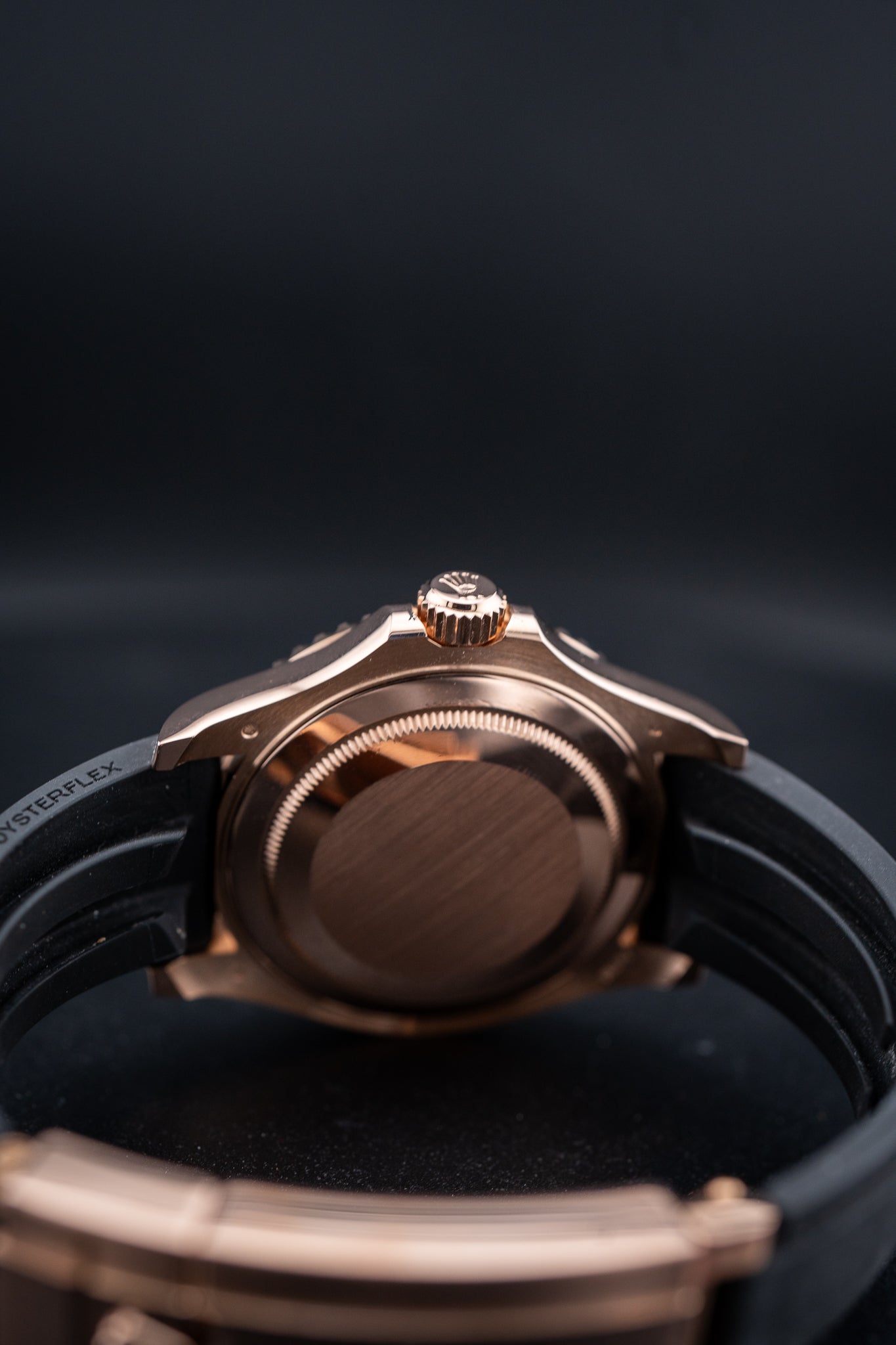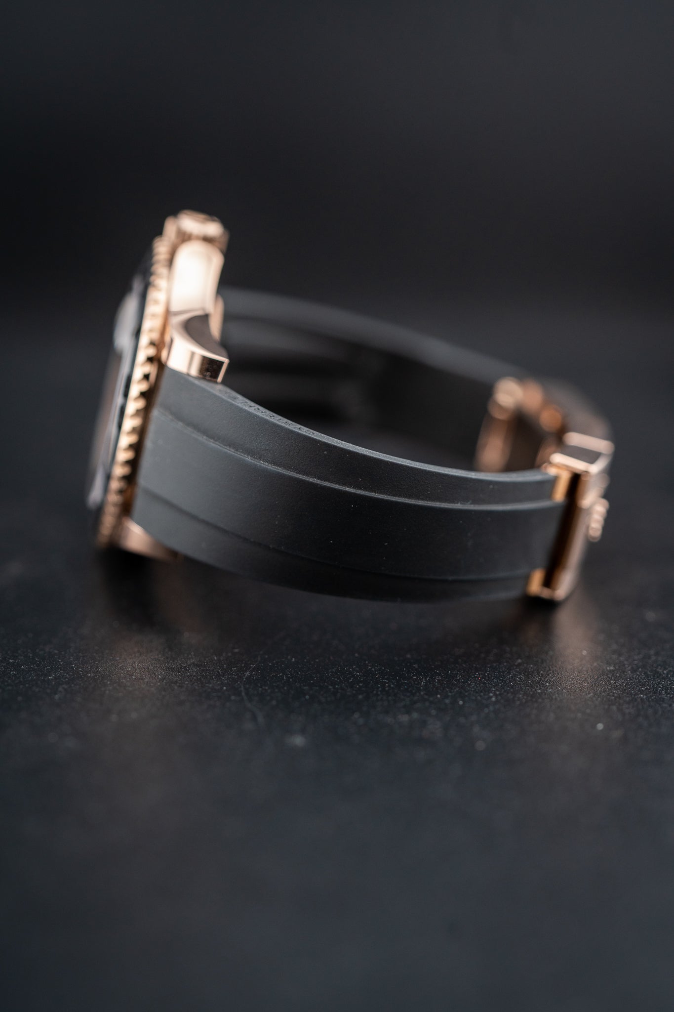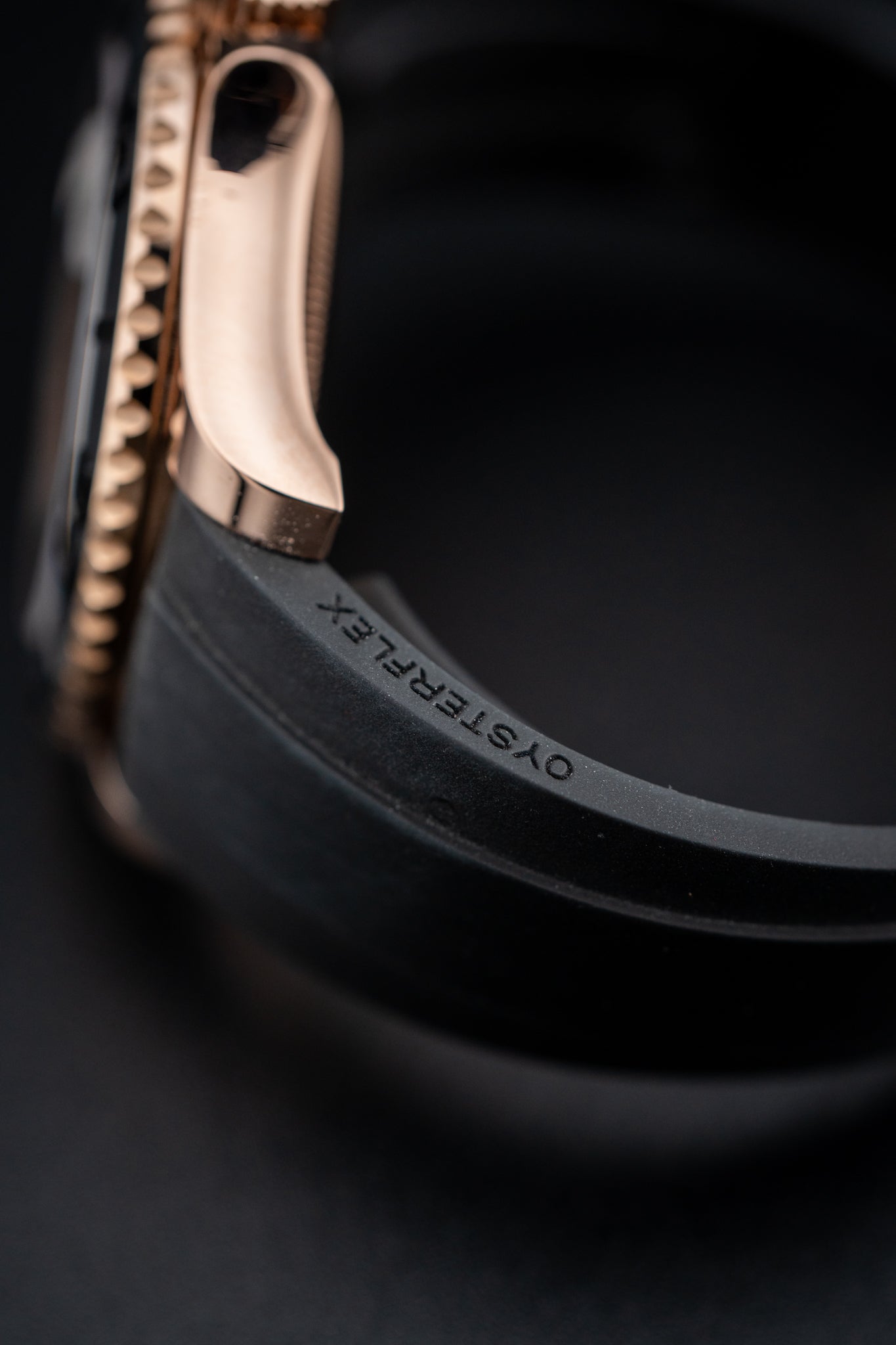 Bracelet: Black Oysterflex Rubber Strap with 18k Everose Gold Folding Oysterlock Safety Clasp and Glidelock Extension