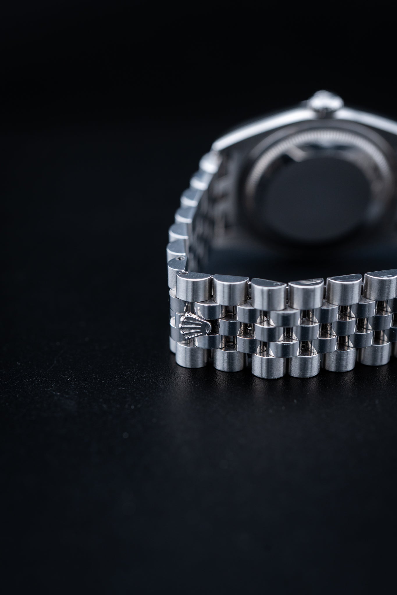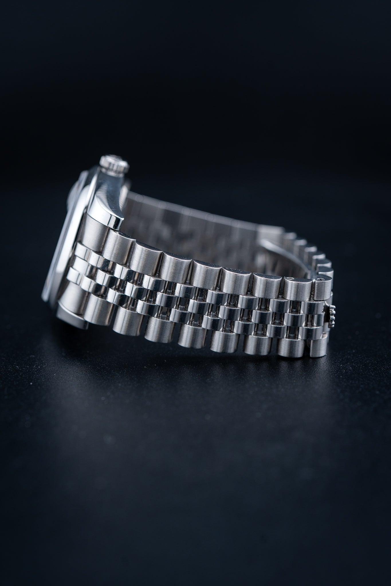 The Rolex Datejust 36 Ref. 116200 pairs a crisp white dial with the refined elegance of a Jubilee bracelet, offering a perfect blend of sport and sophistication. A versatile, timeless piece for any collection.